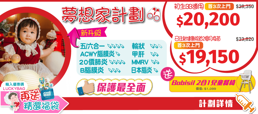 - 上門注射服務: 須依疫苗計劃注射的順序使用,即首次或首2次使用 (視乎贈送次數而定,所贈送或購買的上門注射服務只適用於香港,部分偏遠地區未能提供服務或需額外收取偏遠地區附加費 查閱詳情);