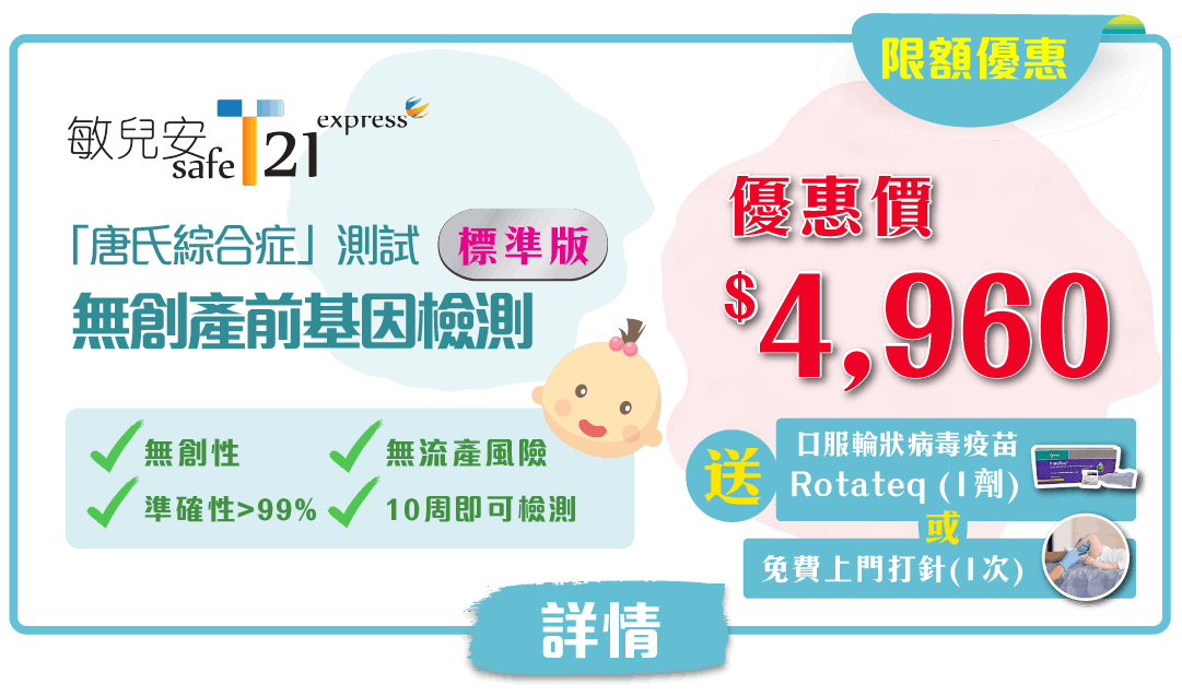敏兒安T21 及 NIFTY Pro+ 是一項針對孕婦的無創產前基因檢測(游離DNA篩查),用於評估胎兒出生時攜帶某些染色體異常的風險。無創產前基因檢測可於懷孕10週進行,通過簡單的抽血來評估可能影響寶寶健康的狀況,亦可篩查常見的染色體異常,包括三體綜合症、性染色體非整倍體和微缺失/重複綜合症,準確率達99%,並提供胎兒性別的資訊。抽血過程並不會對孕婦或胎兒造成傷害,亦沒有流產風險。