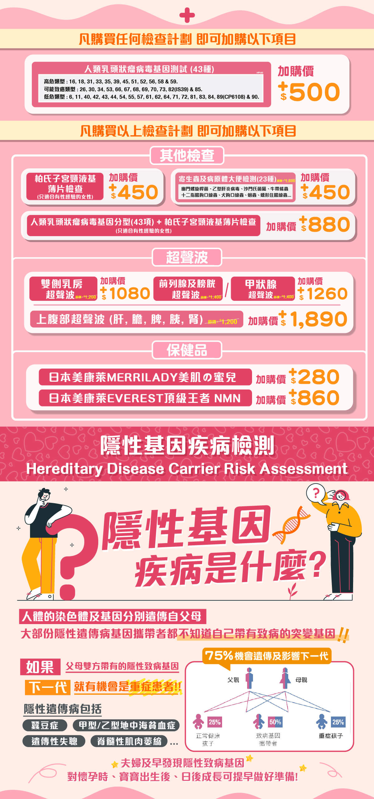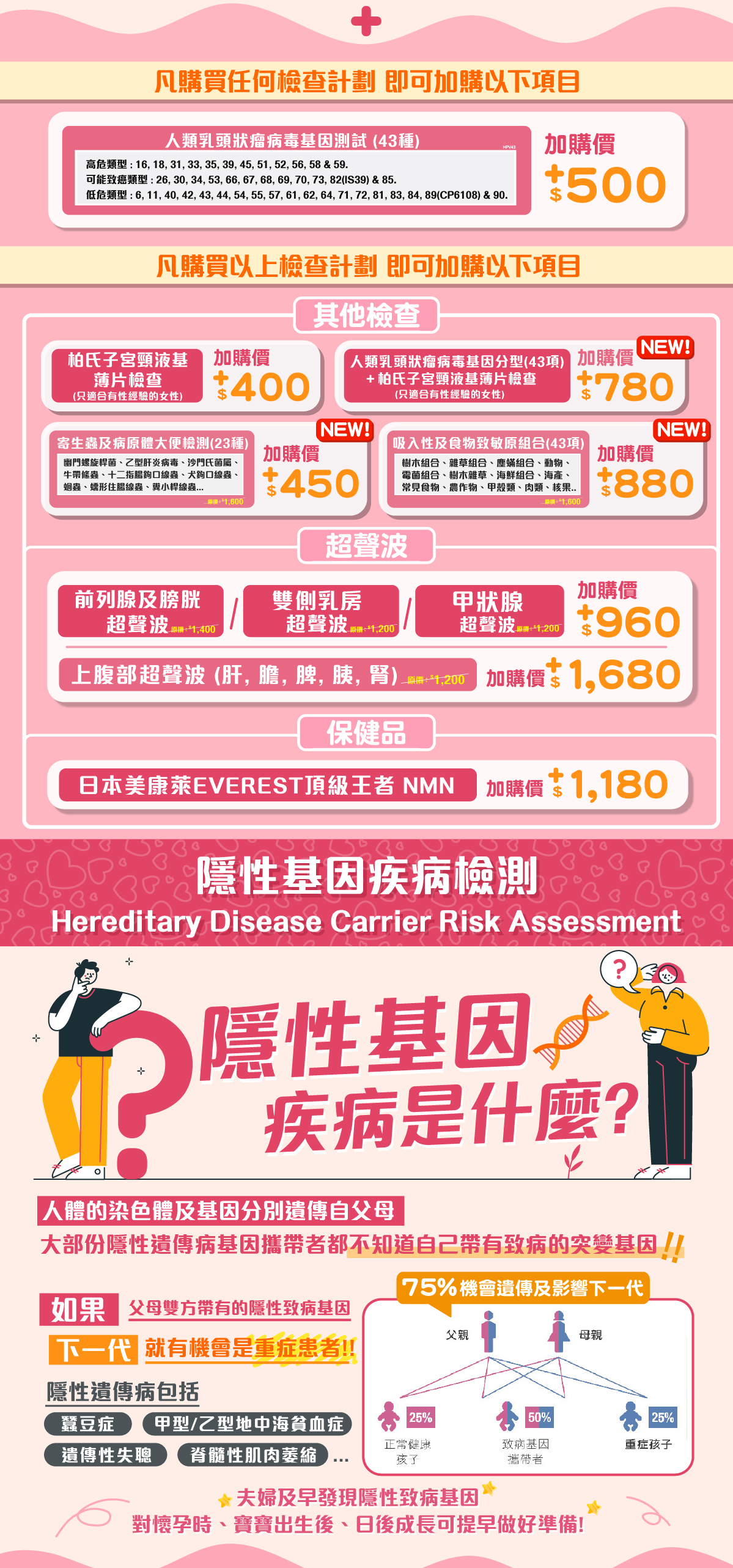 3. 加購優惠只適用於購買以上推廣檢查計劃,所有加購優惠項目須與檢查計劃服務一同使用。