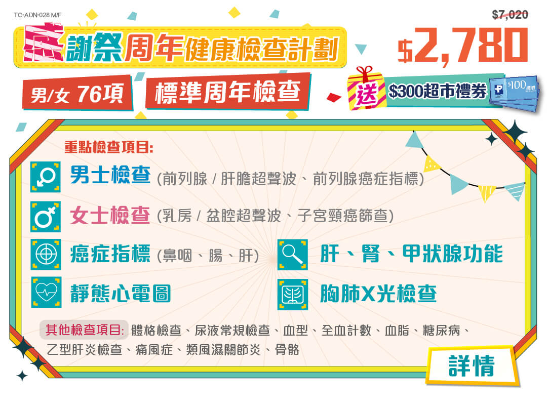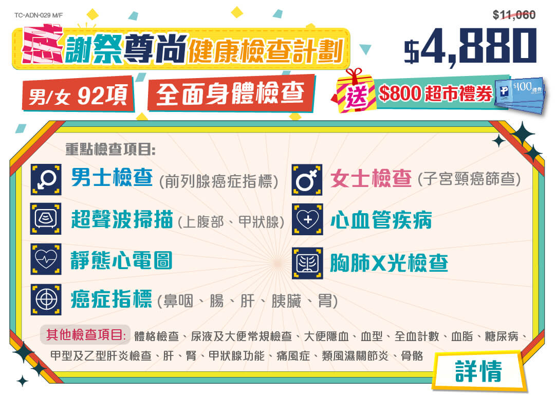 - 超市禮券會於進行檢查當天,在時代醫療服務中心領取。