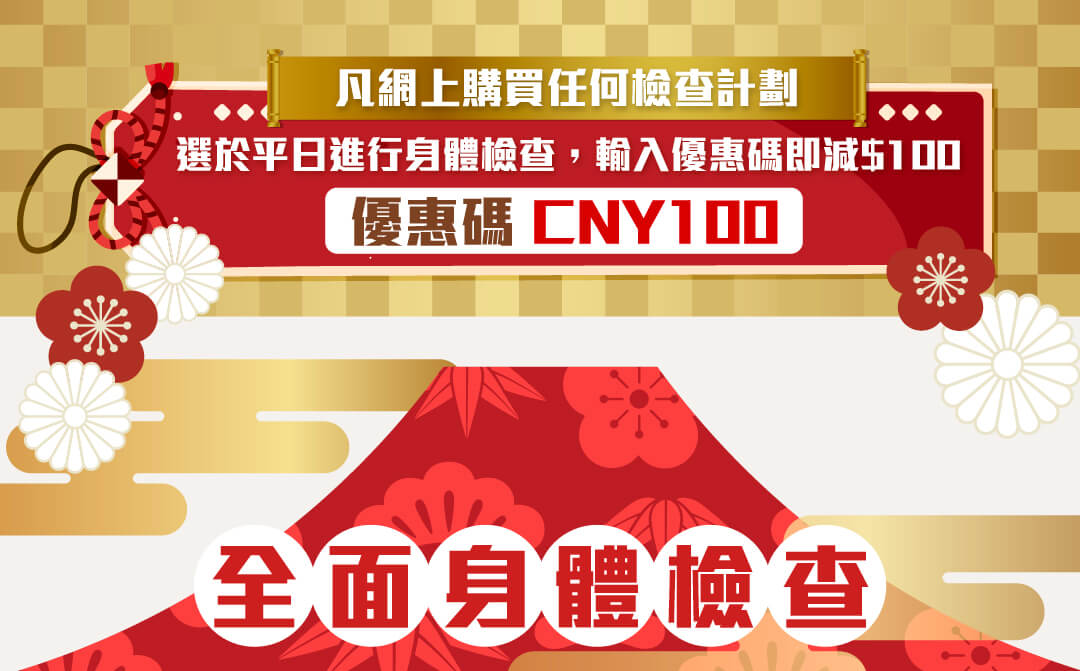 2. 凡於此推廣期內,於Medtimes官網購買任何檢查計劃,並選於平日進行身體檢查,輸入優惠碼即減$100。(只限可於網上購買的服務,並需於網上交易時輸入優惠碼及成功付款。)*