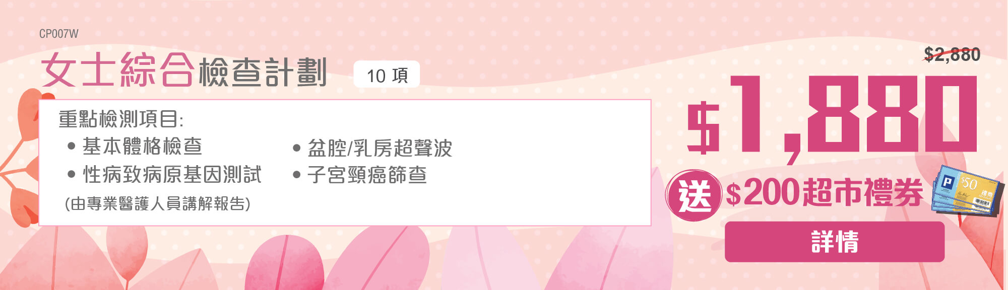 ‧ 購買任何身體檢查計劃滿HK2,000並選擇星期一至五進行檢查,可全單享$100折扣優惠。