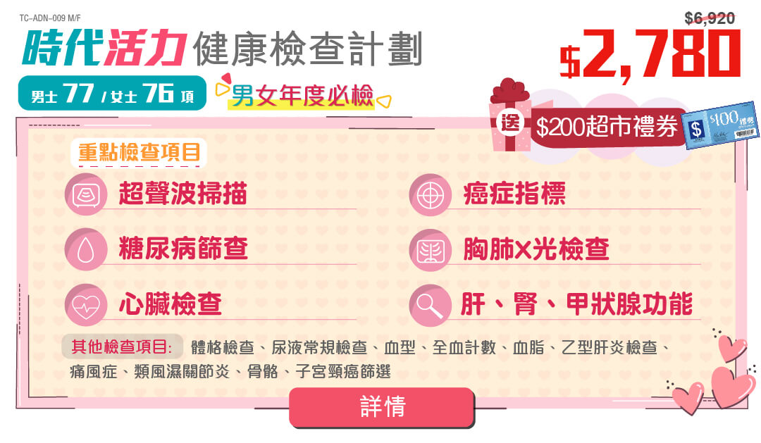 - 超市禮券會於進行檢查當天,在時代醫療服務中心領取。