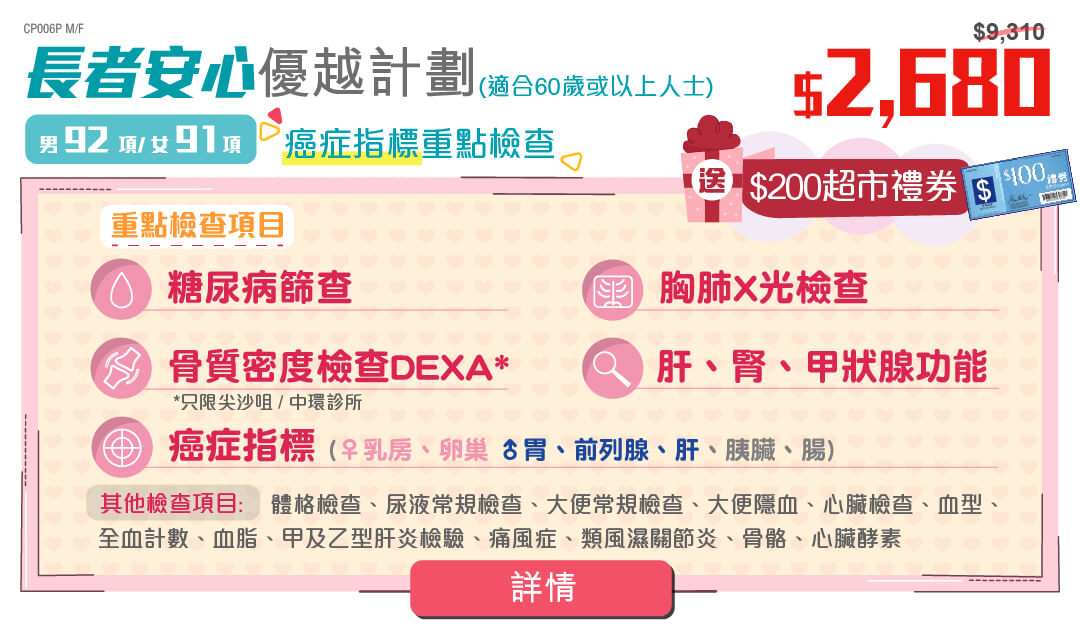 - 所有加購項目/贈送的項目,須與所購買的身體檢查計劃當天一同進行。